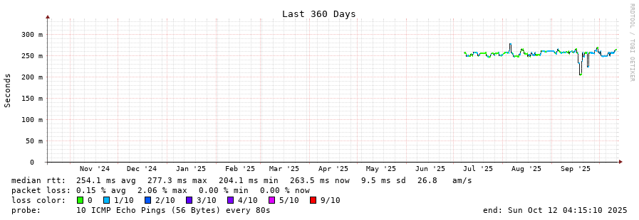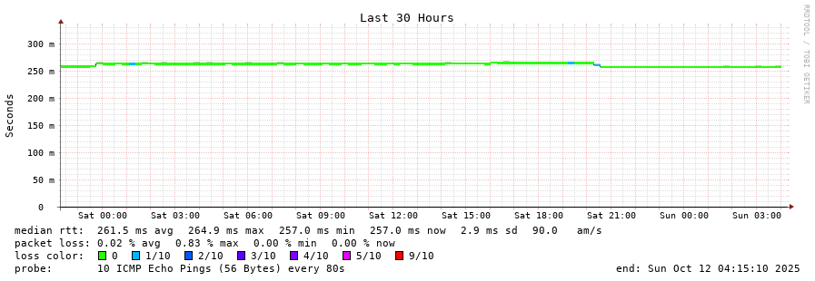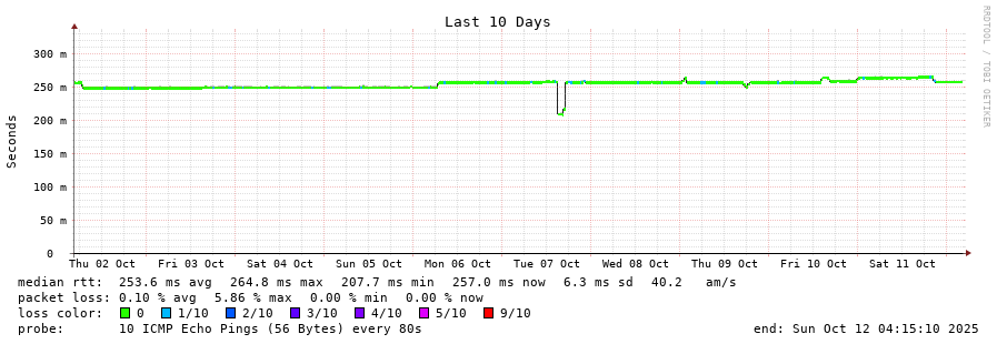 12 > 80.84.20.244 (80.84.20.244) [AS6774] 237.174ms 236.589ms 236.780ms