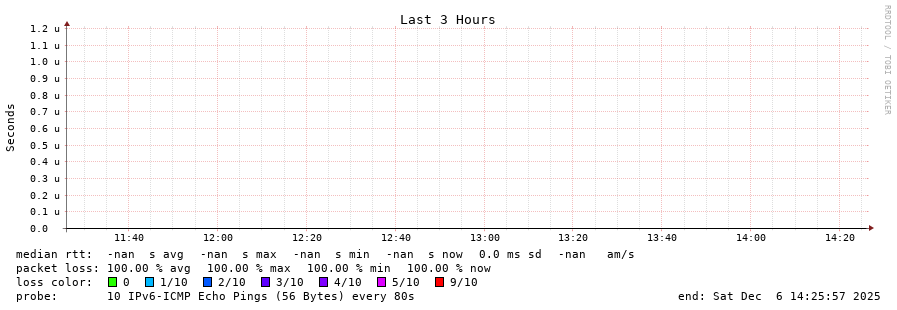 traceroute to fd78:93ae:fdfe::2 (fd78:93ae:fdfe::2), 30 hops max, 80 byte packets - Generated at 2025-12-06 14:15:01
