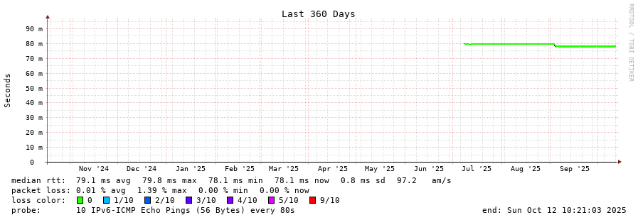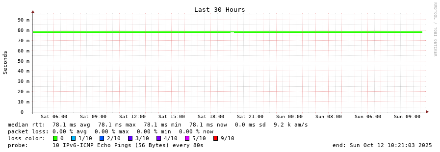 8 > 2604:2dc0:0:100::1:f805 (2604:2dc0:0:100::1:f805) [AS16276] 78.055ms 78.032ms 78.031ms