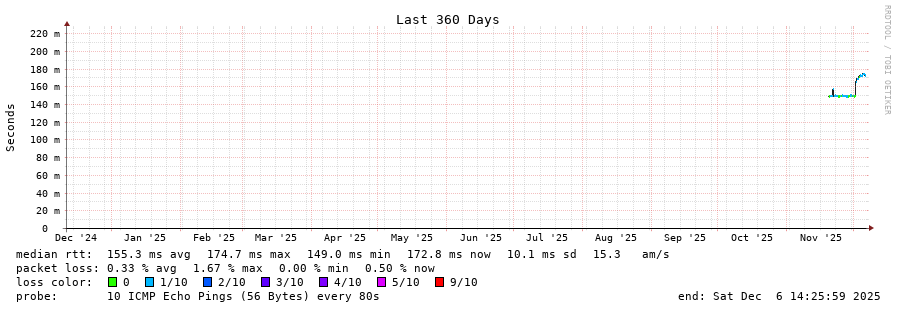 traceroute to 168.232.148.1 (168.232.148.1), 30 hops max, 60 byte packets - Generated at 2025-12-06 14:15:01