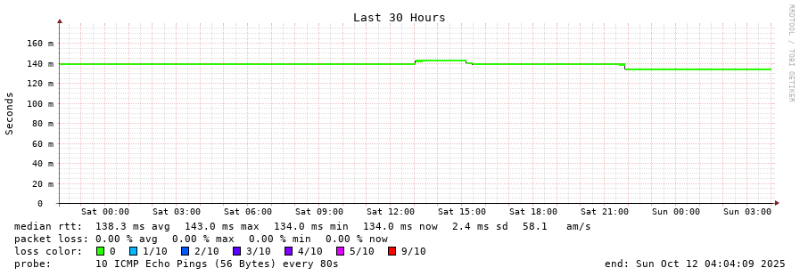 11 > port-channel4.core1.fmt1.he.net (72.52.92.66) [AS6939] 135.023ms 134.834ms 134.893ms